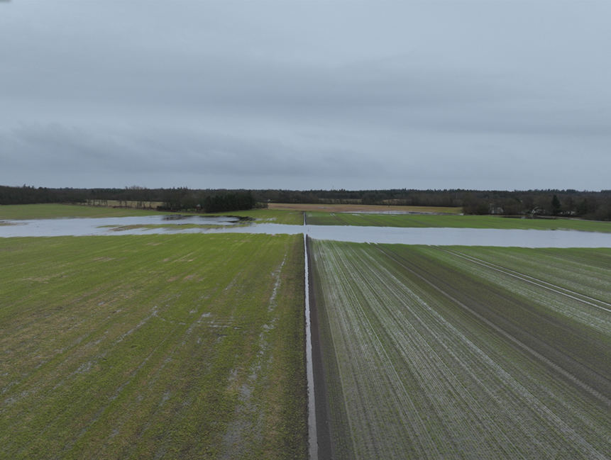 Ved høsttid kan områder hvor der er dræn som ikke fungere vises ved at der er farve forskel på nærliggende områder på NDVI billederne.